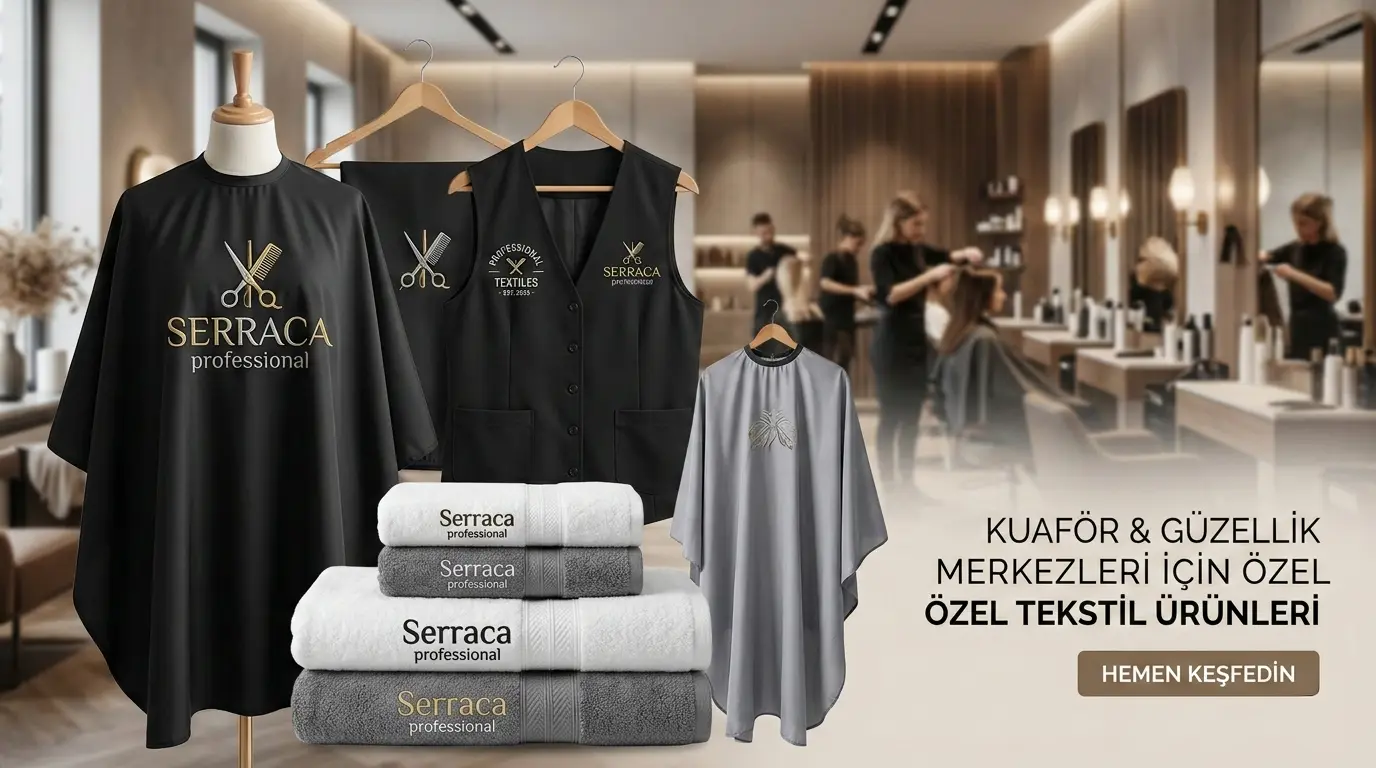 Serraca Profesyonel, kuaför salonları, berberler, güzellik merkezleri ve spa işletmeleri için kaliteli ve dayanıklı salon tekstili ürünleri sunmak amacıyla kurulmuştur. Profesyonel kullanım için tasarlanan penuar, havlu, önlük ve kesim örtüsü gibi ürünlerimiz, işletmelerin günlük ihtiyaçlarını karşılayacak şekilde özenle seçilmektedir.